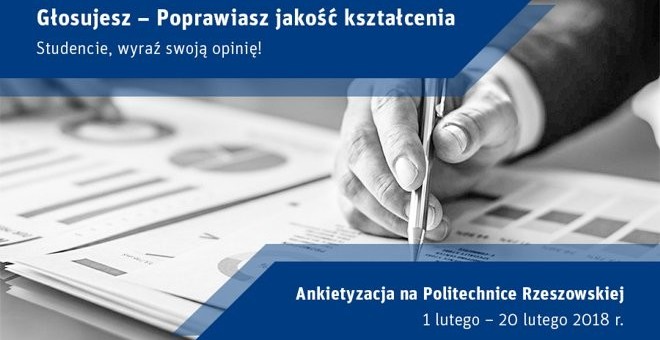 Na Politechnice Rzeszowskiej ruszył proces ankietyzacji. Studenci, uczestnicy studiów doktoranckich, słuchacze studiów podyplomowych oraz pracodawcy mają możliwość anonimowego wypowiedzenia się na tematy związane z oceną i poprawą jakości kształcenia.