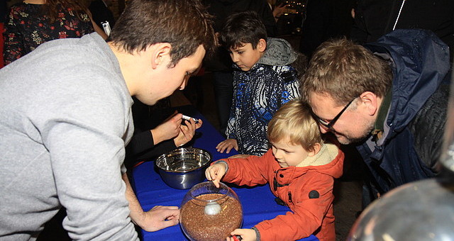 Studenci pod kierunkiem Pracowników KFiIM przedstawili jak w prosty sposób wykonać poduszkowiec oraz Nurka Kartezjusza. Uczestnicy Wielkiej Orkiestry Świątecznej Pomocy mogli zaobserwować powstawanie chmury w butelce oraz wrzenie wody w temperaturze pokojowej. Bardziej odważni mogli poczuć na własnej skórze ładunki elektryczne wytworzone przez generator Van de Graaffa i pobawić się świetlówkami w Rycerzy Jedi.